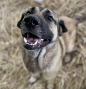 He especially loves women and will happily cuddle once he feels safe. He enjoys giving kisses and plays well with our dogs. We're unsure how he is with cats or livestock, but he's still young and could learn with gentle, consistent training.