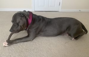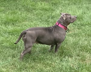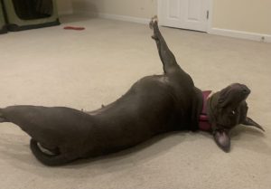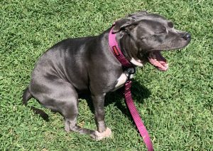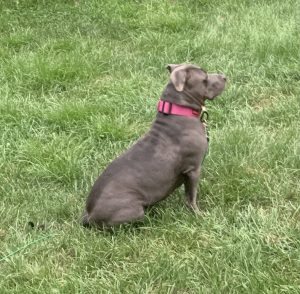 Alamo (‘MoMo’) is a sweet, young, energetic American Bulldog with a lot of love to give. She enjoys time in a fenced in yard doing zoomies, sniffing & exploring her surroundings. She also loves her Kong toy, rope/squeaky pull toys & playing tug any chance she gets. She has a grey and white coat & is 4 years/11 months old. She would thrive in a home experienced with bully breeds & as an only dog. She is trained to sit before eating meals or taking treats. She is housebroken & takes care of her business in the yard. At 74 lbs, she needs a strong leader/capable handler on walks. She is responding well to training that would be best continued in her new home. She is spayed, microchipped, & up to date on all vaccines/veterinary care. Flea/tick/heartworm prevention is via Simparica Trio. Her previous owner noted she had past issues with allergies, now resolved with meds and a limited ingredient diet (Simply Nourish Salmon & Sweet Potato Adult Large Breed from Petsmart). Alamo loves to snuggle at night with her human…will you be her cuddle-bug? 🙂