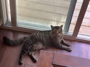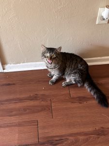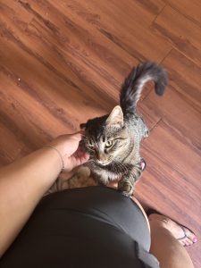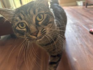 Alpha is a cuddle buddy and will stay attached to your hip if it were an option. He likes to talk a little especially when it’s overdue for his attention time. He loves people but not too comfortable around other pets. With that being said he’s never been aggressive toward anyone or animal (most he will do is hiss and hide) I’m sure he’ll settle into his new home with no issues. He’s very playful and enjoys a good toy, mostly strings so keep your laces hidden! He’s a big baby just wanting love always, I’m told he looks mean or scary but he’s a sweetheart!!!! P.S I’m not exactly sure about his weight but I’ll update if I get the chance.
