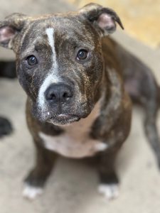 Apollo is a beautiful brown brindle mix, about 50 lbs right now. Loves chicken with dinner sweet potato treats, any kind of treats really, and loves fruit