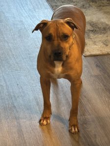 Asami is a 3-year old very high energy mixed breed American Pitbull Terrier. She has rarely met a stranger, human or dog. She is very playful and loves being outside and running around. She is up-to-date on all vaccines required by her vet and has been on Simparica Trio for heartworm, flea, and tick prevention. She does have sensitive skin and very rarely requires a little extra treatment. She will bark to let you know that someone is at the door, but has never bitten any one. Once she warms up to a new person she wants them to pet and rub her. She has undergone professional obedience training as well.