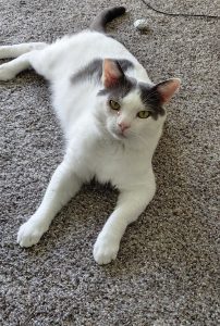 Brody was apparently dumped or lost and found my deck when I was setting a trap for a feral cat. He wasn't afraid of me, rubbed my leg and talked to me. I wasn't able to find the person he lived with. I trapped him, got him neutered and vaccinated. He's been living in a spare bedroom since December. My vet has advised me not to let him co-mingle with my 14-year-old cat, because he is FIV+. He is doing well, but it's not good for him to be in that room indefinitely. There is a tall gate in the doorway, so he can see me and my cat. He is playful, great with the litter box, talkative and LOVES attention! If he didn't have FIV I would just adopt him. He would be great as an only pet or with other FIV+ cats. When he and my cat see each other through the gate, there's no hissing or clawing. He wants to be friends! I would love to see him in a home where he can give all his love and be able to roam around the house. He should be an indoor cat.
