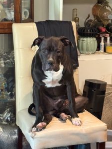 Chaos is a big baby, loves to be loved on and being outside in the yard, He will jump in a chair or flop over backwards for love, still full of energy. Unfortunately, I have not had the time to socialize him with many people or other animals, so I am uncertain how he will do in a house with other pets.