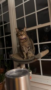 We took Clark in from someone who could no longer care for him. Clark is very sweet and loves to be fed or talked to in a high pitch voice. He’ll chirp back even if he’s in the right mood. He is currently up to date on all vaccinations and is on NexGard Combo for cats which is flea/tick/heartworm medication. He likes to play with our other cats but recently started picking on our smallest to the point she’s always huffing and has started licking patches of fur off. We believe Clark can live in a multi pet house but would do best a single pet