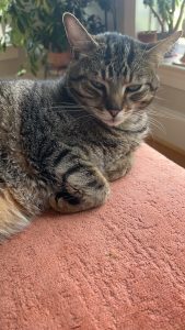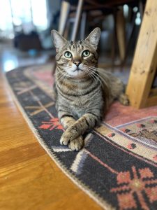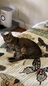 We took Clark in from someone who could no longer care for him. Clark is very sweet and loves to be fed or talked to in a high pitch voice. He’ll chirp back even if he’s in the right mood. He is currently up to date on all vaccinations and is on NexGard Combo for cats which is flea/tick/heartworm medication. He likes to play with our other cats but recently started picking on our smallest to the point she’s always huffing and has started licking patches of fur off. We believe Clark can live in a multi pet house but would do best a single pet