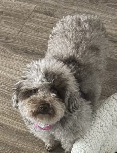 Cookie is a very smart loving miniature poodle that loves walks, cuddling up next to you or just being a true lapdog on the couch. She is very loyal to her owners. She also needs to be walked three times a day. If you are retired or work from or stay at home that would be best for cookie.