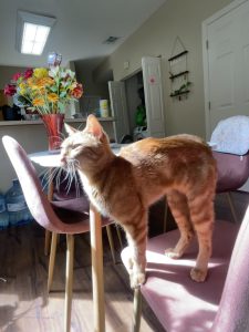 Our new home is not pet friendly, unfortunately. there’s an area where she is able to run outside but we live on a busy road and we figure she might get hit by a car Someday. I’d rather she live a happy long life as much as I love and will miss the silly girl. Miss Freya is a year old and is very sweet and attention driven. She will not go to sleep unless you cuddle. her way of showing affection is licks and kisses. She knows and loves to climb on your shoulder and give kisses(if nails are properly kept She’s learned to minimize claw use while on your shoulder) she will not randomly climb you she very cutely asked for upies. Her favorite toy is a cheap Walmart mouse. She will go crazy for it or the dollar store cat toys she loves a good feathered handheld toy. is good outdoors, She prefers to be at home I would have loved to keep her as an inside-outside cat but the busy road does not allow it. she is on flea prevention. Will miss her dearly, but I want her to live.