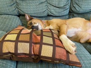 Hayley is currently living in a home with three small children, which has proven to be overwhelming for her. Her ideal environment would be calm and predictable—free from frequent loud noises or fast-paced activity. She does well when left alone in familiar settings, though she may bark when in new or stimulating environments. She would be happiest as the only pet in a home without young children. A fenced yard is not required but would be a nice plus for safe, outdoor enjoyment. She does not rely on a crate and is comfortable sleeping on her own in quiet spaces.