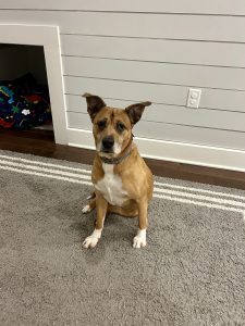 Hayley is a ten-year-old Boxer/American Staffordshire Terrier mix with a soft, tan and white coat and a heart as warm as her coloring. Born around April of 2015, and weighing around 45 pounds, she is a medium-sized girl with a deeply affectionate nature. Hayley is a true companion dog—always happiest when nestled close, sharing her love through gentle nuzzles and an eagerness to connect. She thrives on calm walks, peaceful cuddles, and quiet time by your side. A lover of stuffed toys and balls, Hayley enjoys bursts of playful fun followed by cozy relaxation. She knows an impressive list of commands including sit, lay down, leave it, stay, stand, drop it, wait, and paw. Although she has never had formal training, her responsiveness and intelligence shine through.