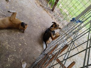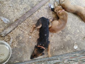 Our mother is half Anatolian Shepard and half Belgian Malinoise and our father is the Doberman from over the back fence.