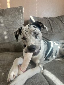 Katana is an 11 month old Catahoula who loves being with her people. She is very playful and would benefit from single owners or a family with children over the age of 5 due to her high energy play style.