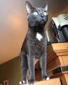 Color/Markings: Grey with white patch on chest