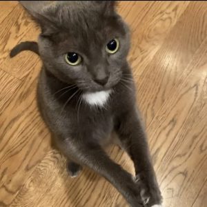 Color/Markings: Grey with white patch on chest