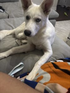 My husband and I work long shifts tends to be home alone. He is great with kids and other dogs is full of energy and loves taking showers.