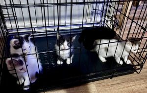 Kittens needing a new loving home. 7 weeks old. 3-female 1-male (black/white).