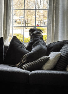 If you have a big bay window oh boy does he love looking out all day long....it's his live TV. He doesn't bark at passerby's just gazes into nature and maybe he thinks he's neighborhood watch for the HOA in his brain who knows but he loves it.