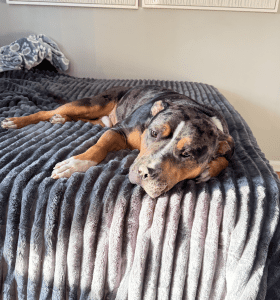 If you like your sleep and are not in a rush to wake up in the morning he is your partner in crime. PJ is not one to rush to get up in the morning or rush to go out to potty or to eat his breakfast. He much rather be lying in bed soaking up cuddle time with you.