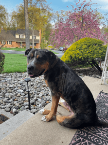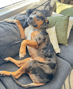 When chewing his bone or stuffy toy he loves to splooting out. Think of what a flying squirrel looks like gliding through the air....yup that's PJ all 4-5 feet of him. A big adorable teddy bear on your floor thinking to yourself how'd I get so lucky to be apart of his life.