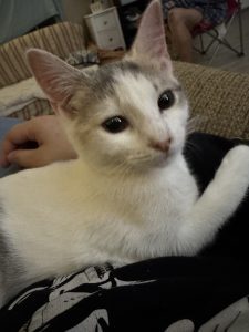 This is Sassafras, or Sassy, and despite her name she is not as sassy as you’d think she is! This mischievous girl is loving and silly, all she wants to do is be up on you, in your lap, and curled up somewhere warm.