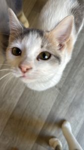 This is Sassafras, or Sassy, and despite her name she is not as sassy as you’d think she is! This mischievous girl is loving and silly, all she wants to do is be up on you, in your lap, and curled up somewhere warm.
