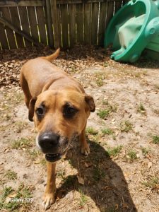 Unfortunately, Scooter was found abandoned by a dumpster at my girlfriend’s place of work. I decided to take her in with hopes of finding her a loving home! She is very social with my other dogs and is always playful and affectionate. You’ll often find her trying to crawl into your lap (more like your skin!) the moment you sit down. Scooter is looking for a caregiver who can love her as much as she can give. She has some dry skin, but a spoonful of coconut oil in her kibble has helped curb her irritation and itching. Scooter can be a lazy couch dog but also loves to get outside and run. She has a cute and funny habit of trying to trick you—she’ll come up to you, then quickly dodge or roll away. I work from home, so Scooter typically hangs out in my office with my other dogs, Loki and Luna. She enjoys staring out the window and “protecting the homestead.” She has spent plenty of time with my 12-year-old nephew and is obsessed with him. Younger children would need to be tested, as she sometimes gets a little too excited trying to show affection. Scooter can be a bit uncomfortable around intact female dogs, but nothing has escalated to aggression. She is house-trained (no accidents inside) and understands basic cues like sitting, though she is a little shaky with direct commands like “sit” or “lay down.” She tends to find a spot to lie down rather than following the exact command. She is not spayed, and I do not have her full history since she was abandoned. When I first rescued her, she showed some fear with barking and whining, but she settled within a day. Her dry skin on her lower back has improved significantly with a couple of weeks of coconut oil in her food. Scooter is loving, playful, and funny, and she’s ready to find a forever home where she can give all her love.