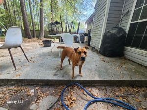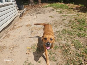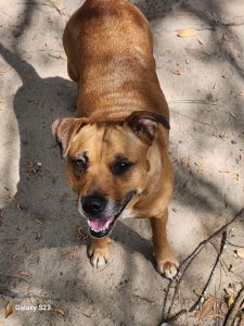 Unfortunately, Scooter was found abandoned by a dumpster at my girlfriend’s place of work. I decided to take her in with hopes of finding her a loving home! She is very social with my other dogs and is always playful and affectionate. You’ll often find her trying to crawl into your lap (more like your skin!) the moment you sit down. Scooter is looking for a caregiver who can love her as much as she can give. She has some dry skin, but a spoonful of coconut oil in her kibble has helped curb her irritation and itching. Scooter can be a lazy couch dog but also loves to get outside and run. She has a cute and funny habit of trying to trick you—she’ll come up to you, then quickly dodge or roll away. I work from home, so Scooter typically hangs out in my office with my other dogs, Loki and Luna. She enjoys staring out the window and “protecting the homestead.” She has spent plenty of time with my 12-year-old nephew and is obsessed with him. Younger children would need to be tested, as she sometimes gets a little too excited trying to show affection. Scooter can be a bit uncomfortable around intact female dogs, but nothing has escalated to aggression. She is house-trained (no accidents inside) and understands basic cues like sitting, though she is a little shaky with direct commands like “sit” or “lay down.” She tends to find a spot to lie down rather than following the exact command. She is not spayed, and I do not have her full history since she was abandoned. When I first rescued her, she showed some fear with barking and whining, but she settled within a day. Her dry skin on her lower back has improved significantly with a couple of weeks of coconut oil in her food. Scooter is loving, playful, and funny, and she’s ready to find a forever home where she can give all her love.