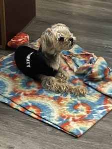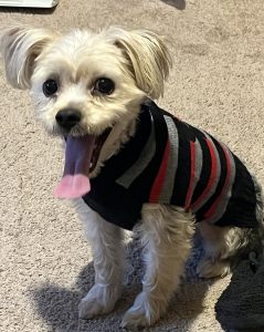 Shadow is two years old. He is a very playful but very stubborn male yorkie poo. Shadow does not bark at all. He is very lovable and just all around fun and a joy to have around. I’m looking for someone who is comfortable with dogs. Someone who is very patient because he will test you like a two year old. Shadow was very spoiled. And he is broken to wear clothes.