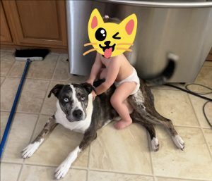 Storm is a 2-year-old male dog (born Nov 5) looking for a loving new home. His dad is a purebred Australian Shepherd and his mom is a mixed breed. We know both parents and they are very sweet, loving dogs just like Storm.