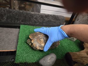 Trio's a very smart girl. She is also willing to be socialized and loves being praised, yes she understands English. She is curious and has learned a lot from observing interactions with my older turtle. She loves to try new things to see what they are. She'll make a great addition to a family who will pay her a little attention and watch how much she eats.