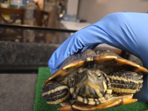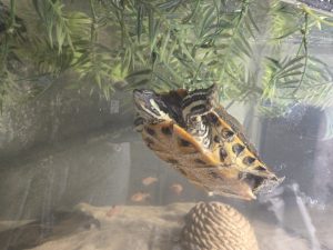 Has more than doubled in size since purchase in September and is aggressive towards other aquatic turtle. Was misinformed that she would be happy in an enclosure with another turtle. Unfortunately, I don't have the space to setup separate enclosures.